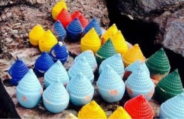 The multi-hued objects, looking like stupas from Indonesia’s Borobodur Buddhist temple site, have intrigued local residents and netizens alike, leading some to speculate that they may be a ritual offering to spirits.