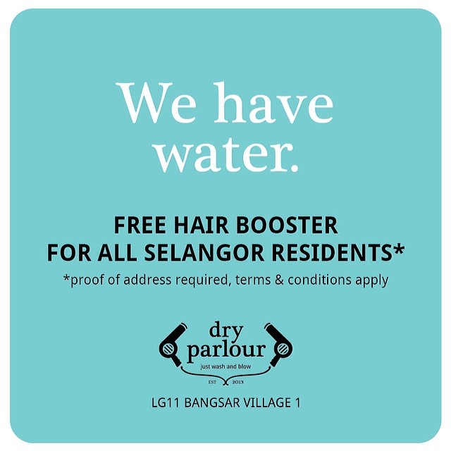 Water woes leaving you high and dry at home? Getting your water supply is probably wreaking havoc on your hair. That’s probably why KL’s first blow-dry bar, Dry Parlour in Bangsar Village 1, is offering to give Selangor residents a free hair booster up until this Sunday, March 2.