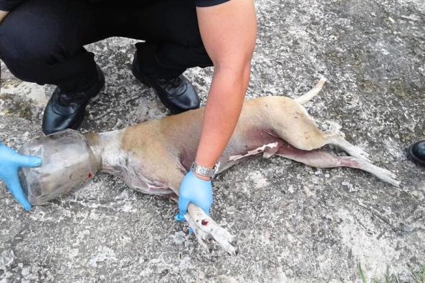 On Monday, a group of Wildlife Rescue Unit rangers finally came to the doggie’s aid after a senior Sabah Wildlife Department officer alerted the Unit about its plight.