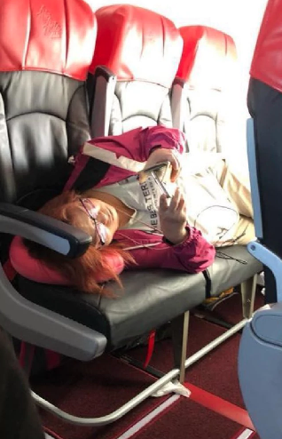 However, once the flight was in midair, she decided to return to the forbidden row of empty premium economy seats, and fashion them as her own chaise-longe.