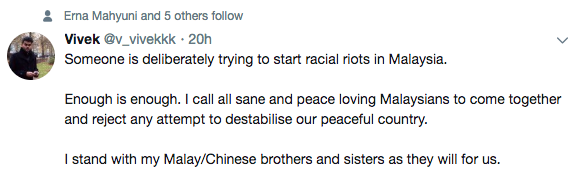 Many Malaysians have taken note of the current situation, and have begun to speculate that certain individuals may be keen to opportunistically turn recent events into racial tumult.