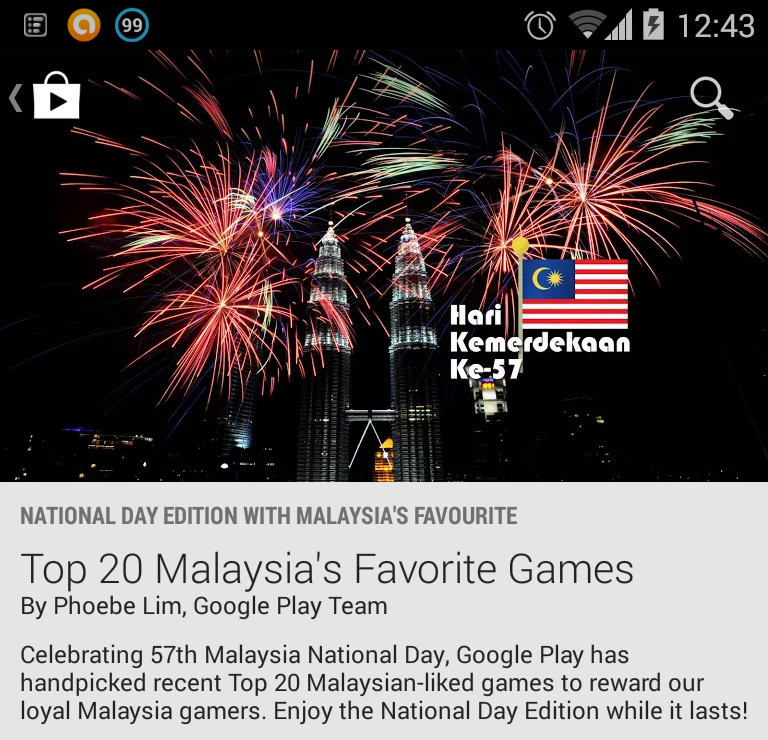 Instead of celebrating our 57th day of Independence on August 31, the Play Store’s “Top 20 Malaysia’s Favorite Games” promotional page listed us as turning 69, a fact that was prominently displayed on the promo copy and the background graphic on both the web and mobile versions of the Play Store.