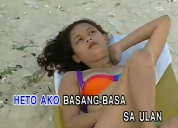 We don’t remember this iconic song having a music vid so this videoke version has got to do for now — good thing it’s pretty awesome. Shot in Fortune Islands, Batangas, it features an unknown named Michelle (in a fabulous color-blocking two-piece) sunbathing and then walking by the seashore. For over four minutes. Priceless