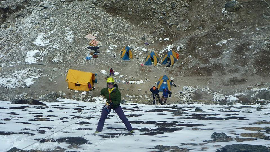She waited a full day at the Chukhung base camp for her teammates to return from the summit, after which they all went down to Kathmandu proper, together.