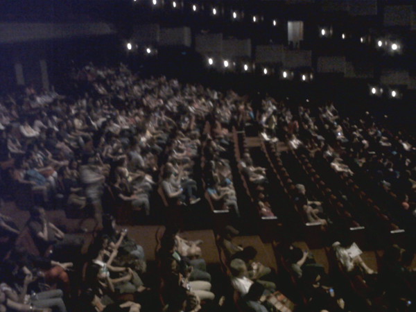 Meanwhile, groups of friends and classmates were seated in clusters in and around the Main Theatre lobby, while visitors were viewing the latest digital cameras a sponsor brought over.