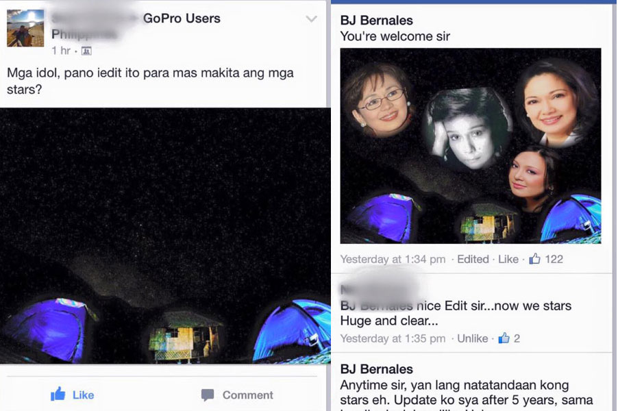 From ‘Gopro Users Philippines Pa-edit Po’ page. Members there ask for their (mostly) vacation photos to be enhanced/edited for free. But you won’t find it on Facebook anymore. They switched their settings from closed to a secret the day my ‘portfolio’ went viral. Biglang dumami ata friend requests nila, Dumami rin bigla ang mga nagpapa-edit. I left the group yesterday, hindi na rin ako makabalik.