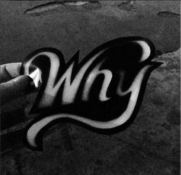 We texted him first, and then we chatted with him on Facebook, and then he disappeared, then he texted us his email address. Despite the lack of information, we are certain he is who he says he is. Because we saw him make his stencils. Aaand, he even gave someone we know a ‘Why’ stencil (see picture above).