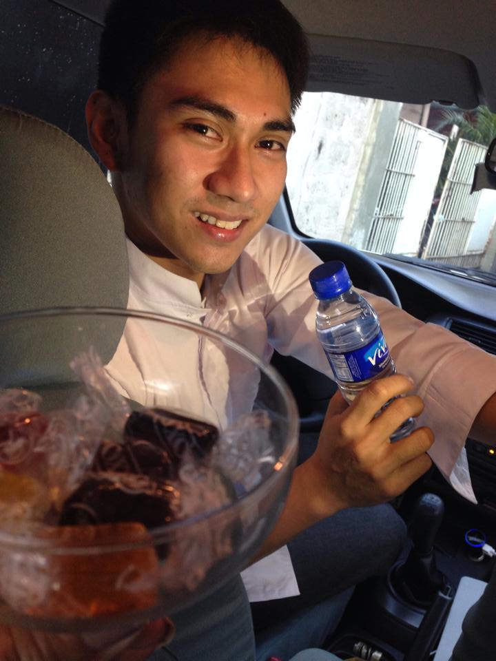 JC: Naku mahirap na. Sa dami ng krimen ng mga taxi drivers ngayon mahirap magtiwala kahit na pogi ka pa at natutuyo lalamunan ko sa pagka-pogi mo. This can be a hold-up, rape or murder noh! Ayaw! Aba, at may dessert glass ka pa talaga na may candies ha. Style!