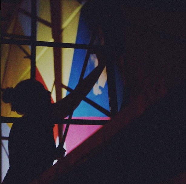 I call that the Magic Diamond pattern and that’s geometric color that looks like 3D because the contrasting colors suggest a 3D pattern. The other thing I call Magic Hexagon, it’s a circle with geometric design that’s more organized inside. That’s inspired by my family’s history in folk art. People would paint those circle things for protection so that’s how I feel when I paint them. It’s like a blessing on the space.