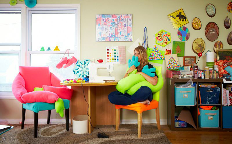 I call that the Magic Diamond pattern and that’s geometric color that looks like 3D because the contrasting colors suggest a 3D pattern. The other thing I call Magic Hexagon, it’s a circle with geometric design that’s more organized inside. That’s inspired by my family’s history in folk art. People would paint those circle things for protection so that’s how I feel when I paint them. It’s like a blessing on the space.