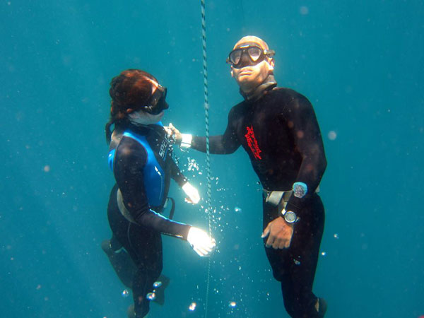 The move: “Being comfortable in deep water is very important because you spend hours in it,” Navarro says. “Our students first learn proper breathing and relaxation techniques, do’s and don’ts for improved efficiency, as well as possible hazards of the sport. More importantly, we explain the practice of safety. A lot of time will be spent on getting the techniques of equalization [of underwater pressure] right, because if not practiced well, could lead to ear injury,” he adds, and continues, “It’s a familiar concept in scuba diving, and something that needs to be perfected in freediving. Equalizing head down can be tricky.”