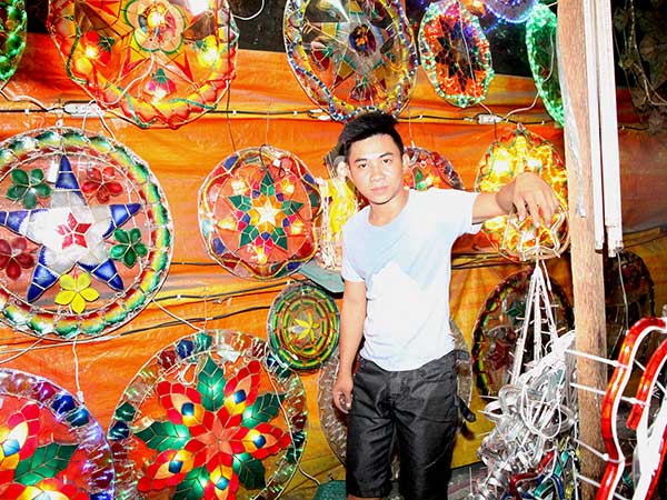Michael “Bulilit” Alonzo, 21, has been making and selling parol for five years now. He works in one of the stalls that are lined up outside Cash & Carry Mall in Makati. The Christmas lanterns he specializes in are made from bronze, capiz shells and LED lights, starting from PHP1,200 for a 20-inch size. The bigger ones start at PHP3,000. To ease the fears of energy-conscious buyers, he also hawks parols with energy-saving features that come with ICC remote controls.