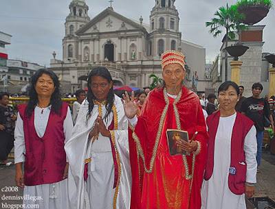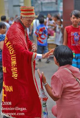 Dennis continues: “I was in the middle of my interview with Kristong Hari in Plaza Miranda when the church bells announced 6pm. Mang Lauro and his followers stoody up. They sand and danced to the amusement of the crowd around Plaza Miranda. Mang Lauro performed some martial arts, doing karate chops, punching, and kicking in the air. The crowd loveed his performance and some even asked for his blessing, genuflecting in front of him.