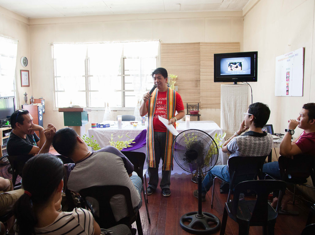 The two-storey apartment appears as you go past a fork road on Bautista Street in Makati. It’s easy to miss, but for a lone flag waving from the second floor. It’s got six colorful stripes — red, orange, yellow, green, blue and violet. It’s a flag for the lesbian, gay, bisexual and transgender community and on the second floor of this apartment is the temporary headquarters of the Metropolitan Community Church in the Philippines, an ecumenical church for non-heterosexuals who have felt excluded from the country’s predominantly Catholic churchgoers. Apart from Makati, it also has chapters in Quezon City, Marikina, Olongapo and Baguio.