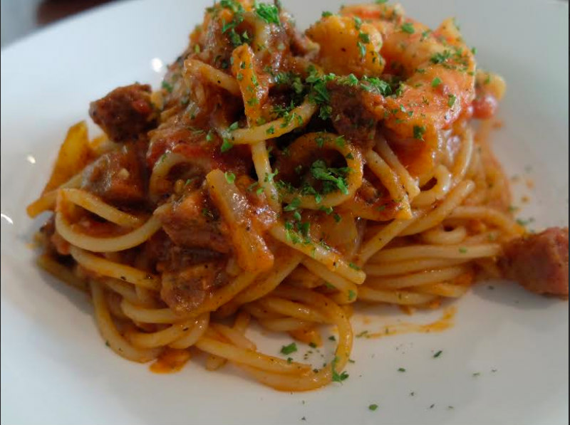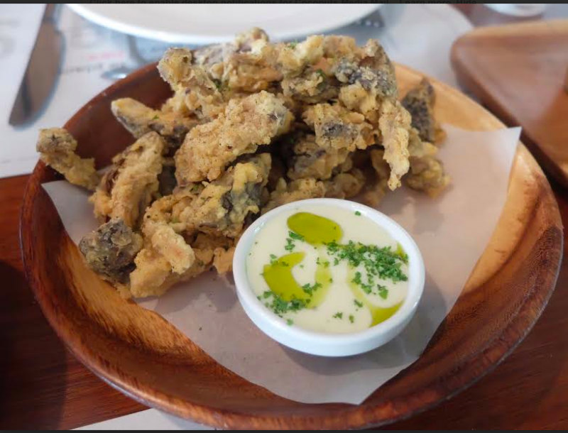Despite what it sounds like, the small plates actually weren’t miniscule. Here’s what we had for lunch: fried tripe, mushroom tempura, grilled liver and banana, chicken harissa, and shrimp and chorizo pasta.