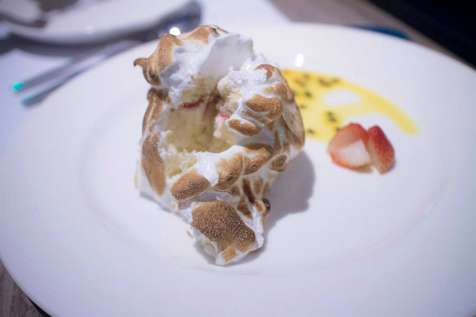 The baked Alaska (PHP380) was stunning, with cozily toasted meringue, soft sponge cake, strawberries and crunchy passionfruit seeds.