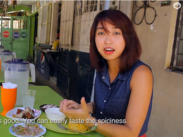 On this episode of Carinderia Crawl, 24-year-old balikbayan Ronalyn Umali went back to Mang Tootz after four years of not visiting the place. She is currently based in New Zealand working in a bank. She orders Bicol express, chicken kebab and banana rhum-a. The balikbayan says that she wants to eat Bicol express because they don’t have it there in New Zealand. Usually, the Filipino dishes that they cook abroad are the staple adobo, sinigang and tinola. According to her, Mang Tootz’ Bicol express is creamy and it is not difficult to eat because the spiciness is just right.