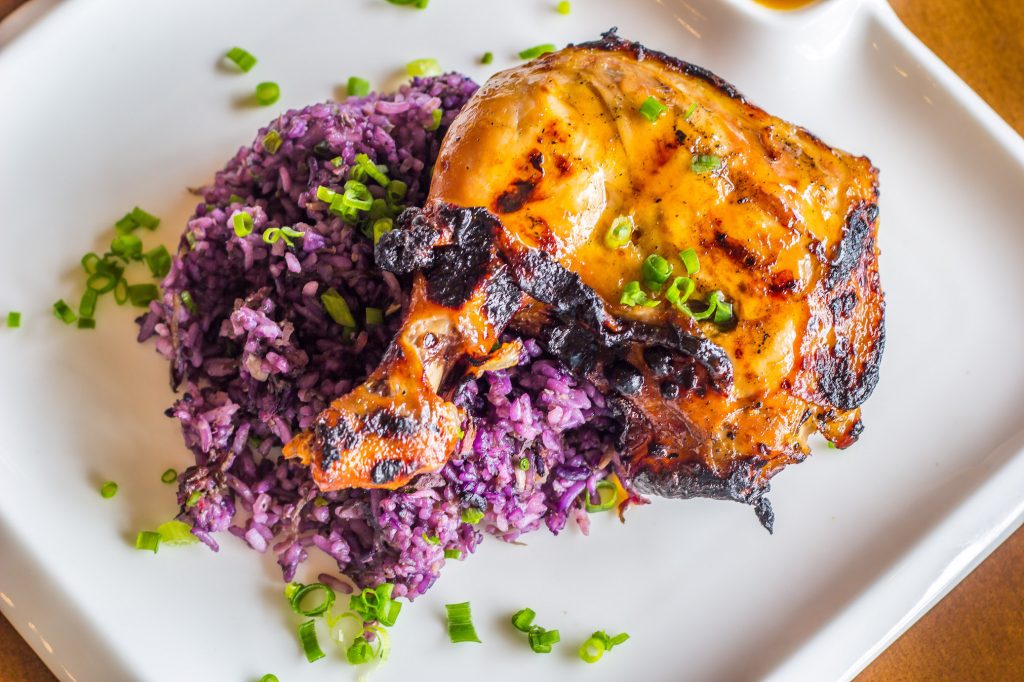 This duo goes together like any classic dish — except this is the first time I’ve ever tried such a combination. The grilled chicken is still moist and the flavor of the Dalandan (a local citrus fruit, like a slightly sweeter lime) marinade bursts into your mouth in every bite. Each piece of the chicken must be savored with a spoonful of the sultry ube rice — made everyday by grating and slowcooking Ube (purple yam) with the rice for the vibrant (and all natural) violet color.