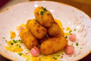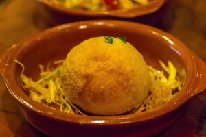 Cafè Enye’s Pollos Croquettas is definitely addictive! Creamy chicken croquettes deep-fried ’til golden and served with their home-made salsa verde and pickles. A delicious party of flavors and textures in your mouth. Fair warning: One serving isn’t enough.
