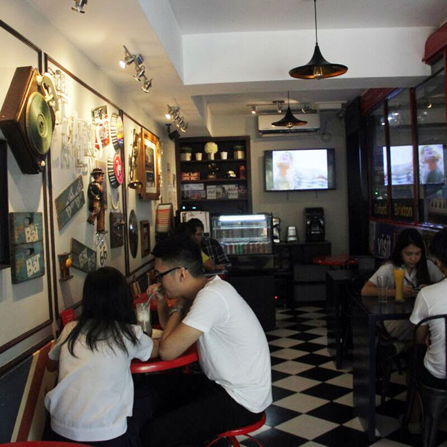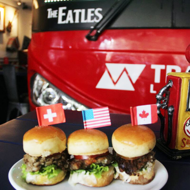 The phone booth isn’t just a call out to London. It’s almost like the Tardis from Dr. Who? You step inside The Eatles and you’re transported to another time and place. A red London bus stands inside the 30-seater diner, as a huge tarpauline of the Fab Four crossing Abbey Road hangs on a portion of the wall. More London memorabilia are displayed on the other side, from posters to records, to what not.