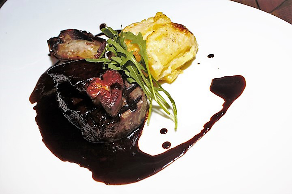 To those classically inclined, there’s the Maestro, grilled steak Rossini (read: tenderloin) cut of US Prime Angus Beef paired with foie gras and a potato gratin, sauced with a from-scratch demi-glace.