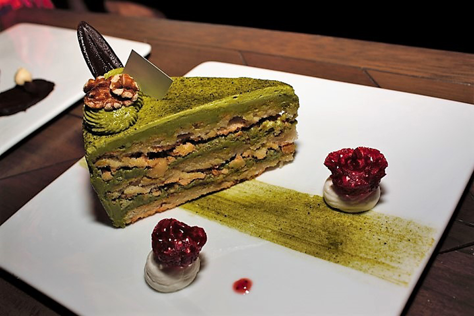 Sip your coffee, tea, or cocktails in between bites of saccharine treats like the sugar-forward Dulce De Leche Cheesecake, or the chocolate hazelnut layered Plascir Sucre. Or if you’re going for the full matcha experience, Epilogue’s Matcha Torte has layers of meringue, matcha cream, chocolate matcha and nuts.