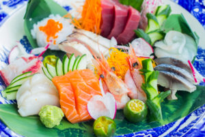 Upon entry, you’ll be greeted by a gorgeous kimono. As you walk down the marble hallway to the main dining area, you’ll see their private Teppanyaki Room and Yakiniku Room — perfect for a fun gathering with friends and family or a unique corporate meeting. The 70-seater main dining room’s piece de resistance is the glass cherry blossom tree, creating a whimsical look any time of the day (but it is especially lovely come nighttime).
