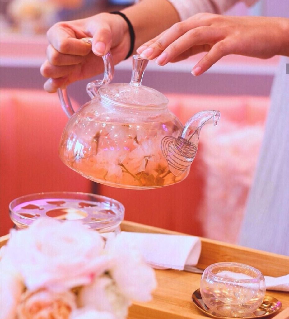 “So we thought, why not open a tea shop inspired by cherry blossoms?” she said. “It has to be pink, it has to evoke cherry blossoms.”