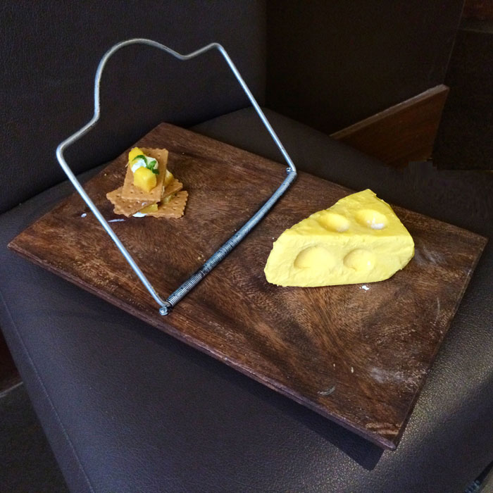 The “Cheese” cake (PHP295) is mango-flavored ice cream, frozen and shaped to look like cheese, and then plated in a giant mouse trap. Really cute and fun, it’s almost becomes difficult to eat because hey, you don’t want to ruin it.