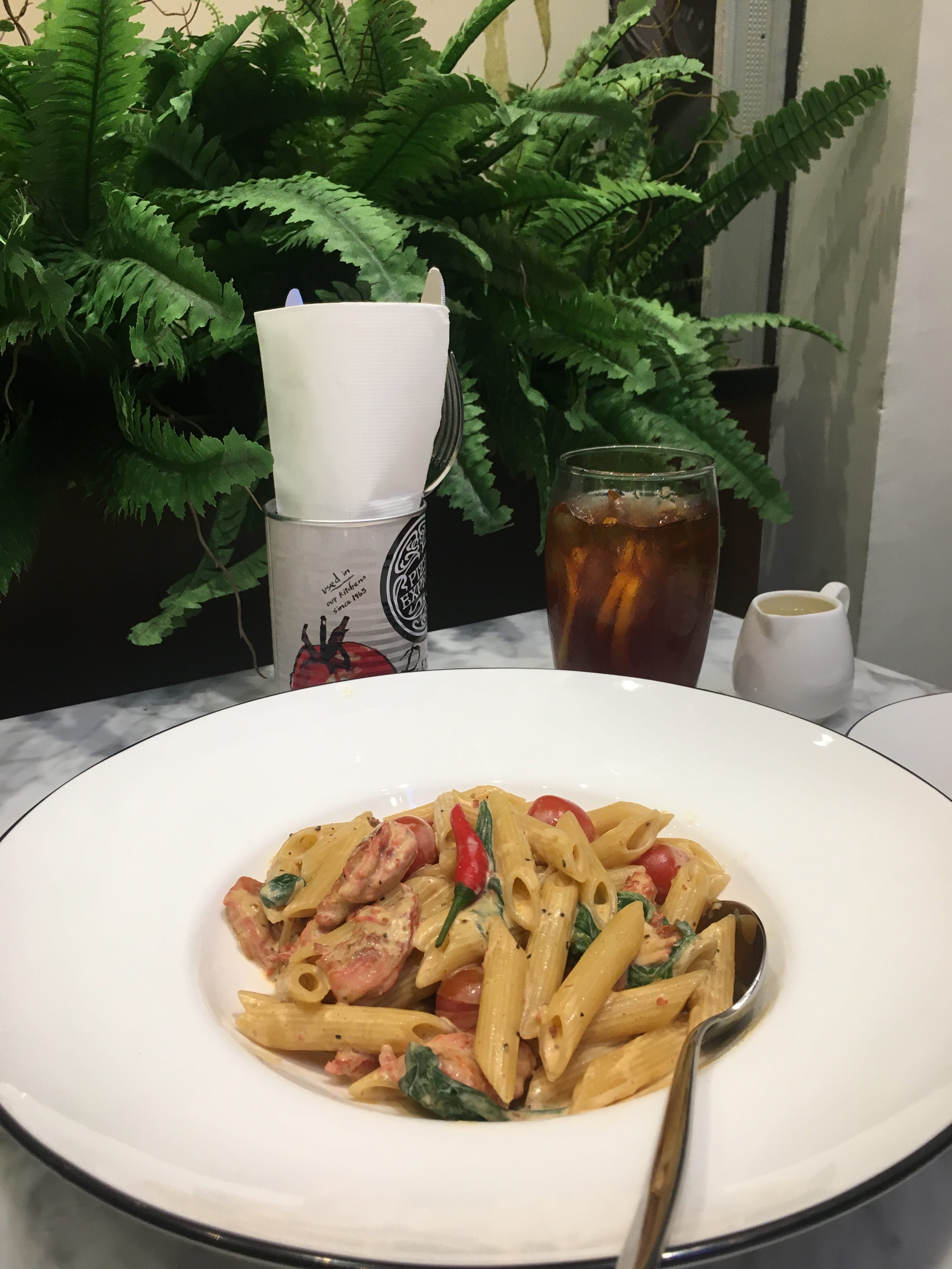 We ordered the Penne Pollo Piccante (PHP340/US$6.58) because we couldn’t decide whether to get a creamy pasta or one with a tomato base. This one is a mixture of both, made with a spicy cream-based sauce and cherry tomatoes. The pasta was cooked just right but the sauce could have used more seasoning. The dish was also on the dry side and would have benefited from a little more sauce.