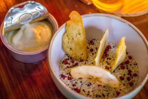 Every meal at 210 Degrees Kitchen + Drinkery starts with this delightfully delicious amuse bouche: Apple and bread crisps with the anchovy-aioli mousse. The tart apple crisp was perfect with the aioli… Actually, everything went so well with that aioli. I could finish an entire tin.