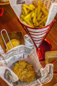 Light, crisp, and delightfully nostalgic. Chef William’s boneless Fried Chicken is marinated in his own blend of secret spices, fried to golden perfection, and served with homemade garlic vinegar and aioli. Just like the pork belly, diners can choose their sides between mashed potatoes, fries, or veggies.