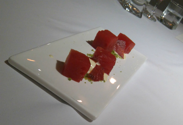There was also a delightful tomato and ricotta salad with sago, and crispy mustasa. At our table, the agreement was that the conchiniillo tacos (with minced suckling pig, mango salsa, frijoles mousse and sour cream) was the star of the cold tapas. At a close second was the very refreshing tuna tartare with lemongrass ice cream.
