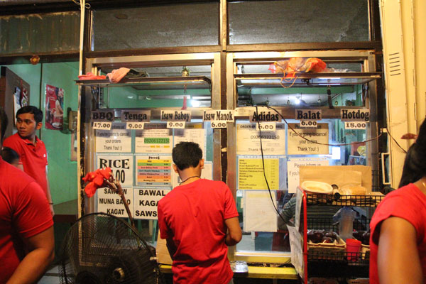 Established 1996, this barbecue joint is pure awesomesauce thanks largely in part to the sweet red sauce that Mang Raul uses for his usual array of Filipino isawan staples: barbecue, isaw baboy, isaw manoy, adidas, tenga, hotdog. He sells about 3,000 barbecue sticks on a daily basis, often running out of goods way before closing time.