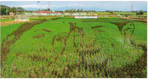 PhilRice deputy executive director Roger F. Barroga learned about paddy art in Taiwan. He brought the art to the country, and PhilRice started doing paddy art, kicking off with a portrait of Jose Rizal last year.