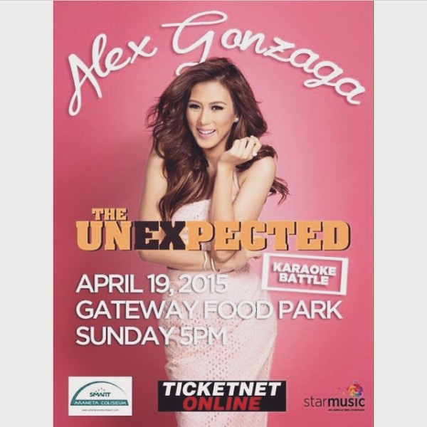 Believe it or not, Alex Gonzaga will have her first major concert entitled Alex Gonzaga: The UnEXpected Concert this April 25, 2015, Saturday, at the Smart – Araneta Coliseum.