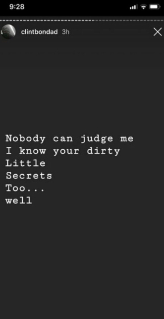 Then ramping it up to a crescendo, the 26-year old wrote, “Careful who you go to bed With,” and “Nobody can judge me I know your [sic] dirty little secrets too well”
