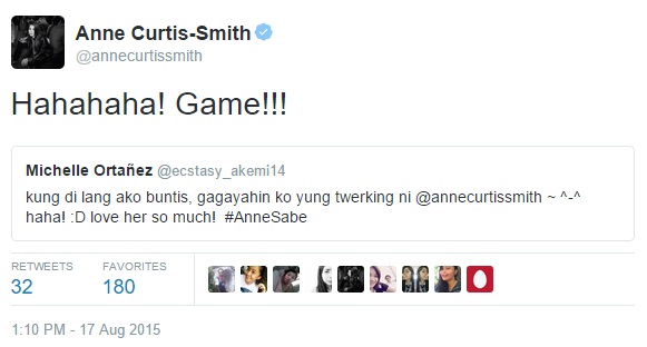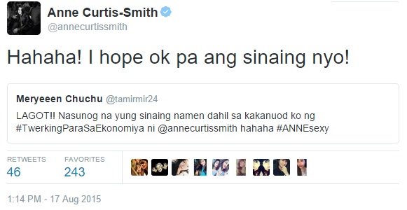 Anne also gamely replied to many Twitter followers who messaged her about the production number.