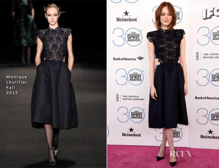 Congrats to designer Monique Lhuillier, whose midnight blue dress was worn by actress Emma Stone at the 2015 Film Independent Spirit Awards held at Santa Monica Beach in California last Feb. 21, 2015.