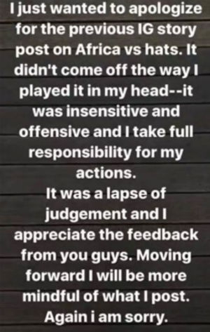 “Buy this hat for my Africa looks or feed children in Africa for the same price?” She asked in an Instagram story, which has already been deleted.