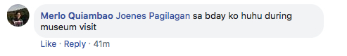 Or as it happens, as Merlo Quiambao pointed out, “On my birthday, huhu, during museum visit (sic)”