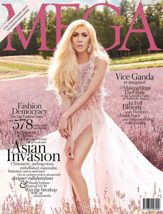 Mega likes to say, this is Vice is ‘reimagined’. It was shot in a scenic lavender fields in Hokkaido, Japan, by none other than BJ Pascual. Vice got a pretty winning team: Juan Sarte took care of make-up while Rain P. Dalaga and Jef Fronda took care of styling. Creative direction is by Suki Salvador. The pretty pastel dresses he’s wearing? They’re by young fashion designer Michael Levya.