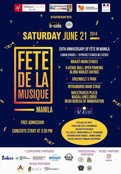 On Saturday, June 21, Fete de la Musique will be happening all around Metro Manila. It’s a massive music party with three different stages and 19 pocket stages set up in two cities of Metro Manila. Call it bigger, call it better, whatever. This year, there’s just more to celebrate because hey hey hey we’ve been holding Fete de la Musique in the country for 20 years already! How time flies, we know.
