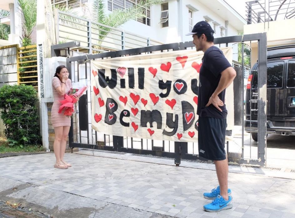 With the much awaited Star Magic Ball coming up this weekend, Xian surprised Kim with a giant banner and flowers on Fri, Oct 21, in her home.