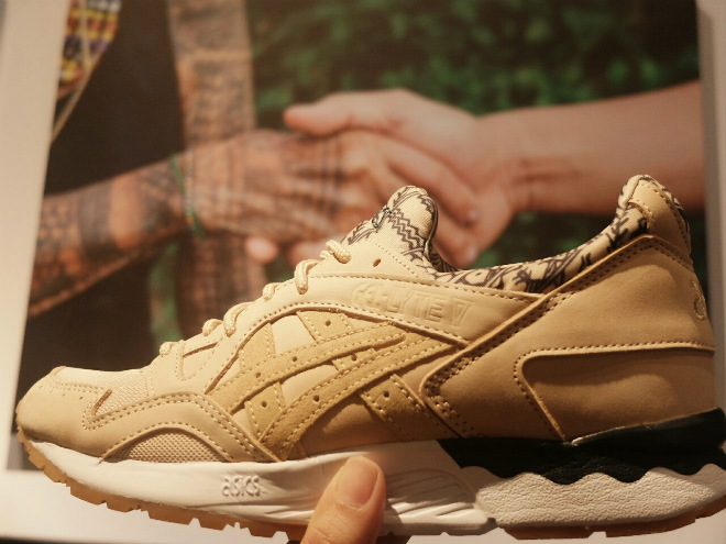 The shoe features nubuck, premium suede, and breathable mesh. It’s a Gel-lyte V model, which was first released in 1993 as a marathon shoe.