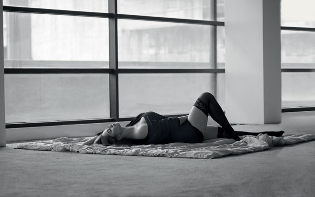 The 23-year old actress is shown rocking a simple tank top in a minimalistic black and white photo that displays her sexy curves.