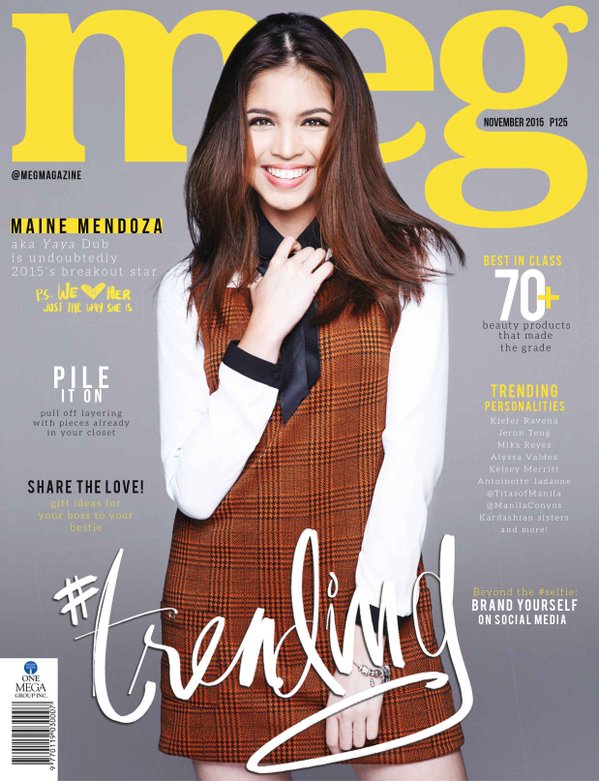 Meg magazine has already unveiled their Nov issue, which, indeed, has Mendoza on the cover with the blurb line: “Maine Mendoza a.k.a. Yaya Dub is undoubtedly 2015’s breakout star.”