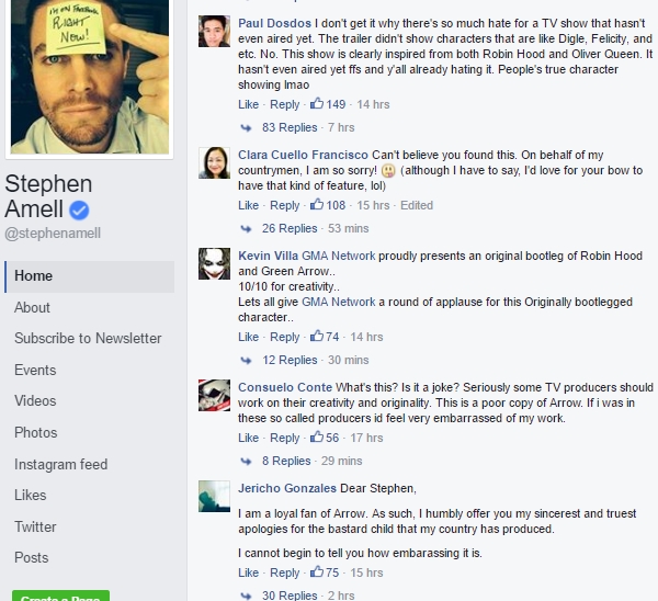 In fact, Amell himself shared the Alyas Robin Hood teaser on his Facebook page.