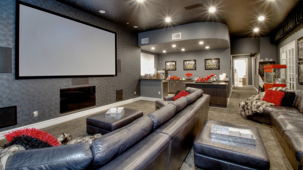 – A home theater plays in high definition and surround sound, with luxurious seating for more than 20 people.