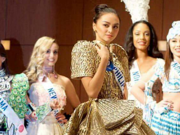The 24-year-old model from Baguio City — who won the right to represent the Philippines in Miss International last Apr — wowed the crowd with her bustled nude Filipiniana by Francis Libiran.